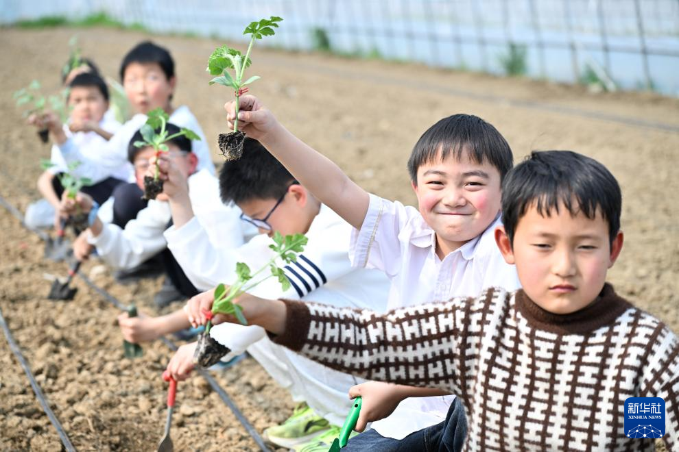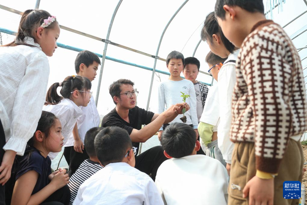 4月1日,在位于江苏省句容市的江苏农博园,工作人员给小朋友讲解种植知识。新华社发(钟学满摄)
