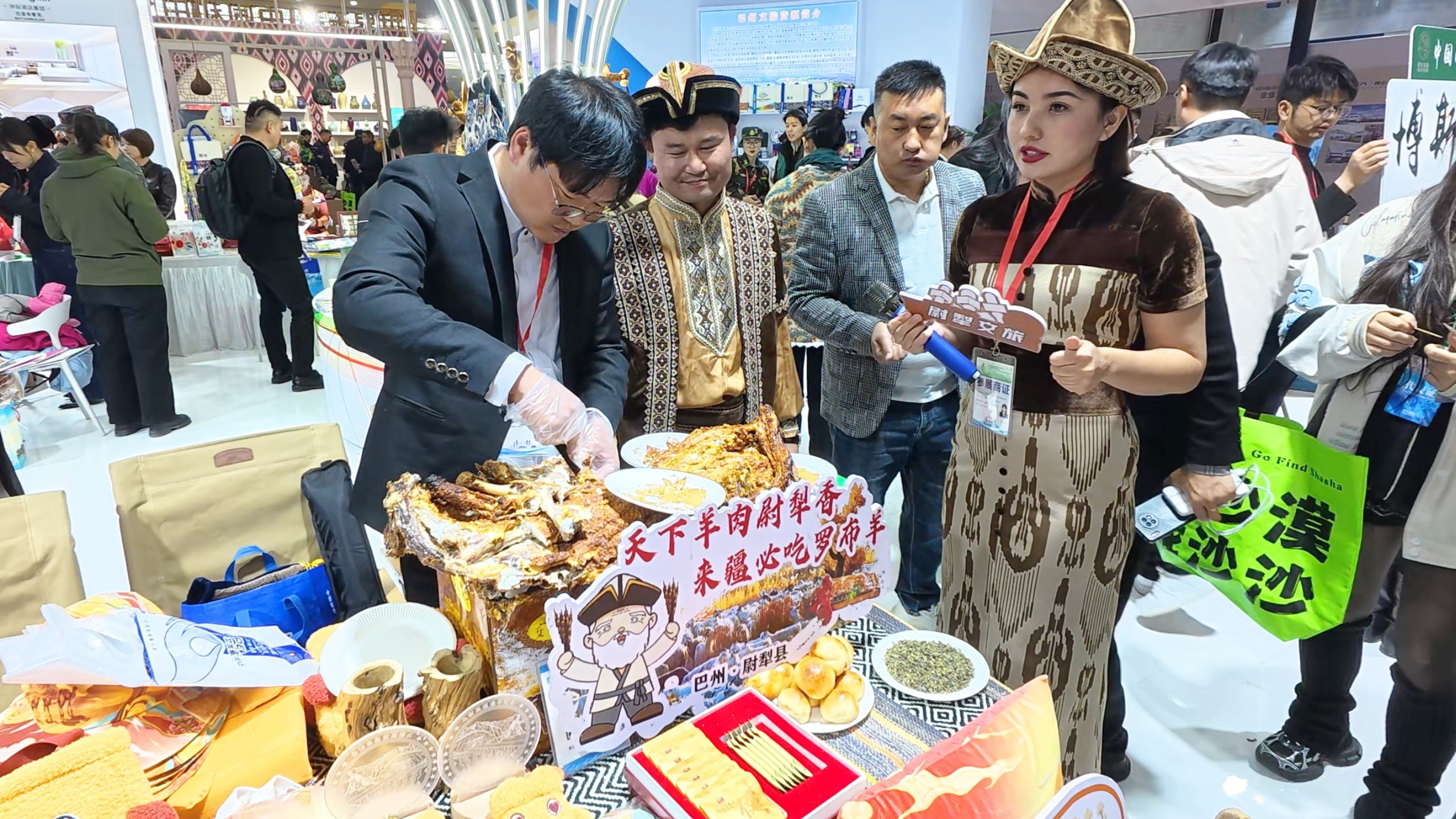 上午10时许,新疆国际会展中心已是人声鼎沸。尉犁县罗布人村寨景区烤全羊金黄诱人的包装、浓郁扑鼻的香气吸引八方来客。“这烤全羊太诱人了!一定要买几盒带回去给家人尝尝。”乌鲁木齐游客李秀英仔细端详产品包装后说。工作人员介绍,这些烤全羊采用传统罗布人工艺烤制后包装,既保留地道风味,又方便携带。