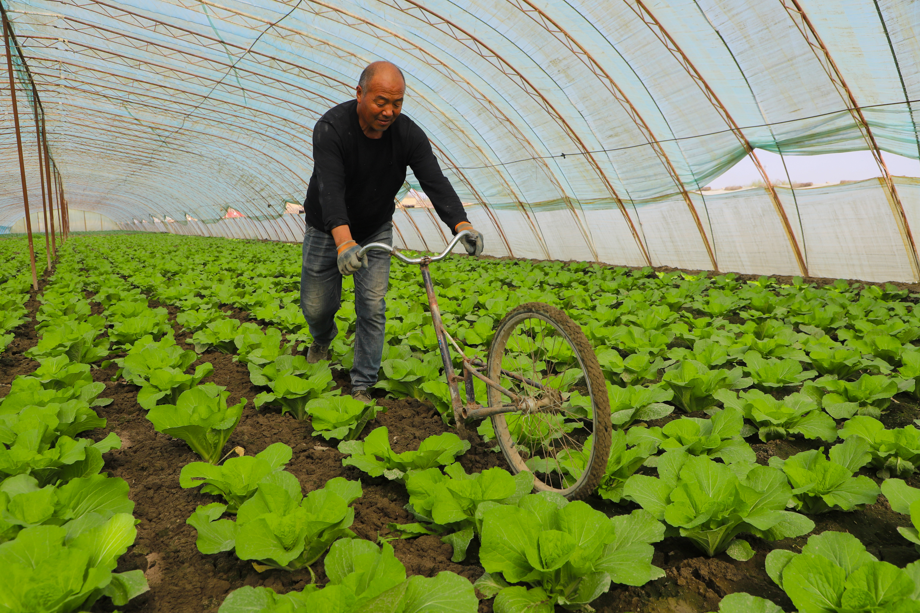 4月8日,记者走进博湖县本布图镇劳希浩诺尔村,一座座拱棚整齐排列,棚内绿意盎然。村民们充分利用自家土地和劳动力,搭建拱棚种植各类蔬菜,田间地头一派繁忙景象。