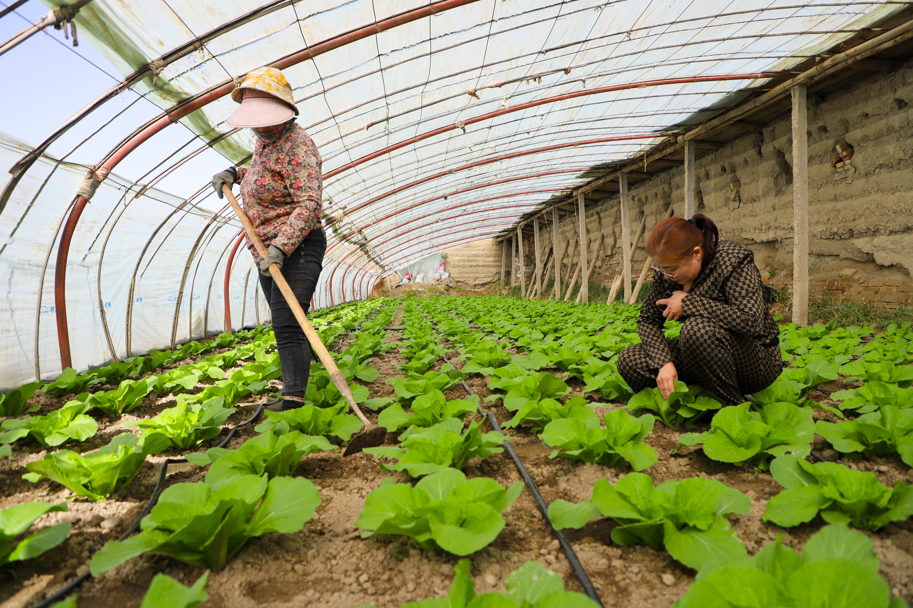 在劳希浩诺尔村五组,村民刘保民正忙着管护拱棚蔬菜。他种植的12亩拱棚里,白菜、莲花白、芹菜等蔬菜长势喜人。通过一年多茬种植,蔬菜产量稳步提升,不仅让自家收入持续增长,还带动了周边村民实现就业。