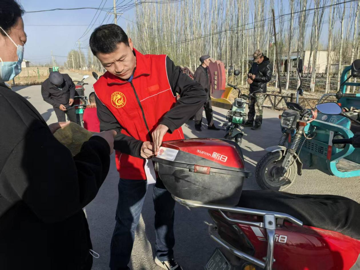 宣讲结束后,乡村干部、党员志愿者组成服务小分队,携带反光条、清洁工具,现场为群众的电动车、三轮车、大型农机具等车辆免费粘贴反光标识,以“小贴纸”守护“大安全”,提升车辆辨识度,降低夜间出行事故风险。(通讯员 谢建新)