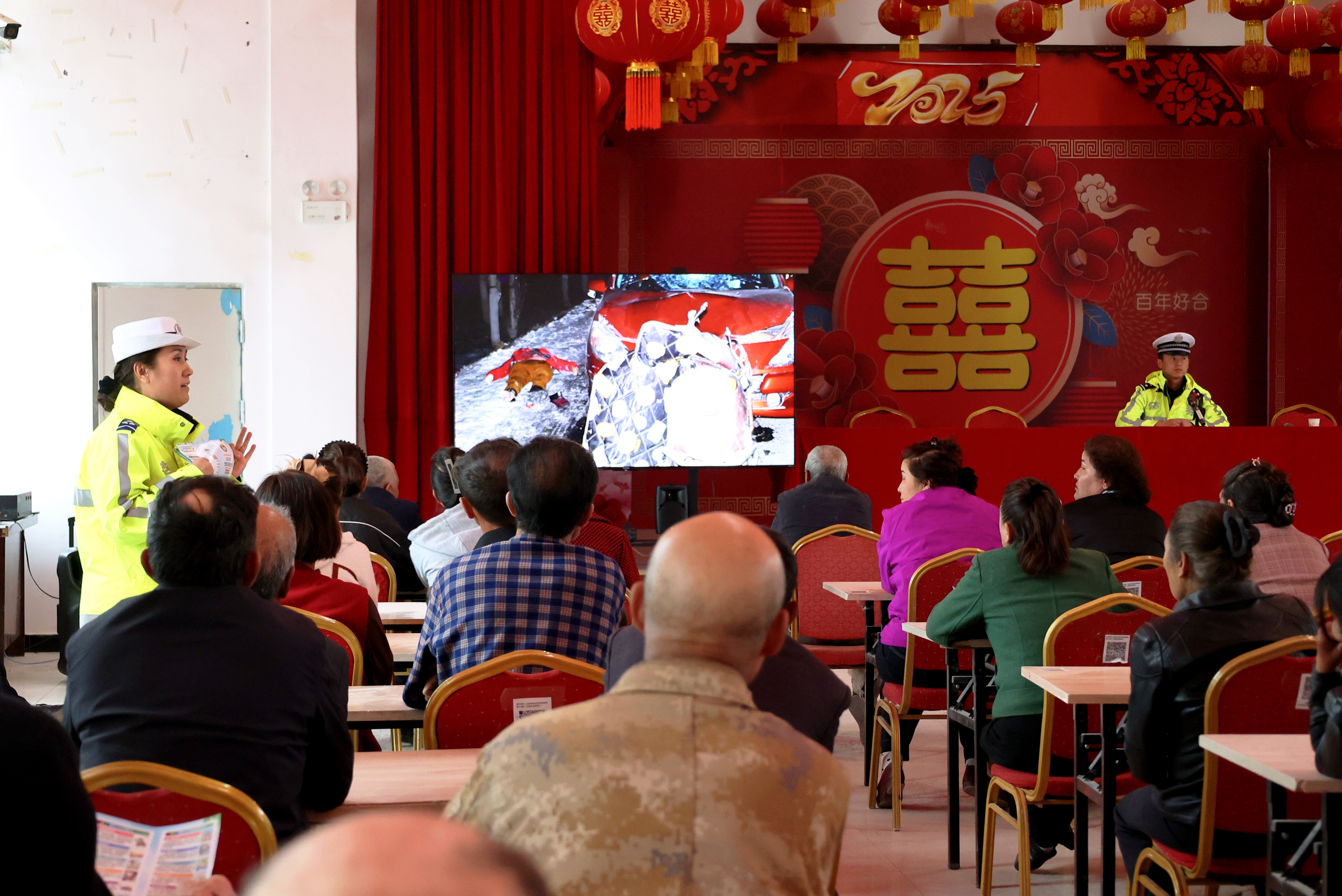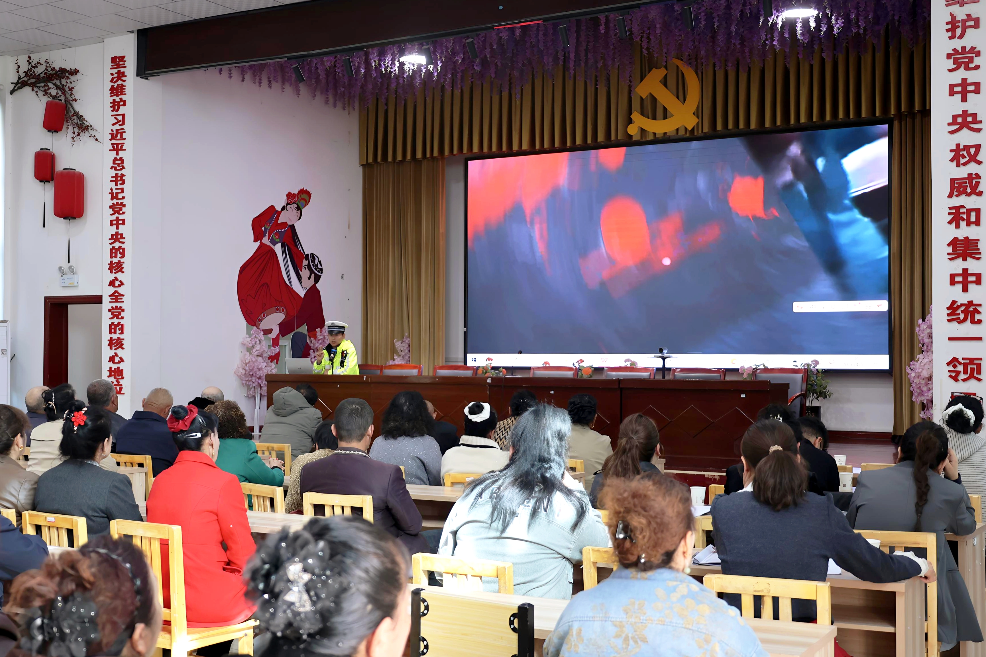 “这些事故就发生在咱们周边乡镇,以后出门再也不敢大意了!”宣讲现场,民警组织群众集中观看《农村道路交通事故警示片》,惨烈的事故画面让在场群众深受震撼。民警以真实案例为切入点,剖析事故原因,讲解春季雨天路滑、视线不佳等路况下的安全出行技巧,引导群众摒弃侥幸心理,实现从“要我安全”到“我要安全、我会安全”的转变。