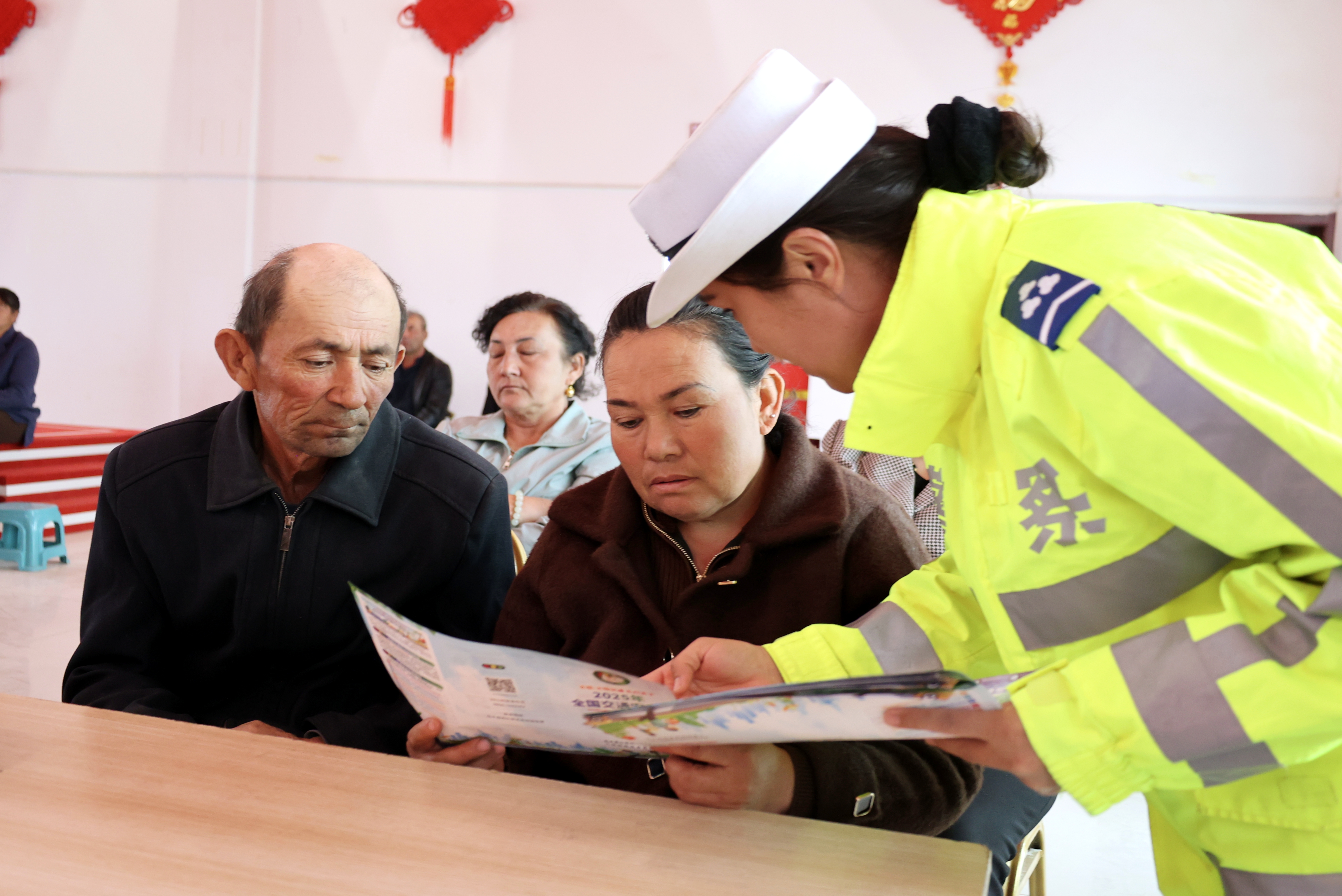 为最大化延伸宣传效果,让交通安全知识覆盖到每一个家庭,宣讲民警向现场群众逐一发放《农村交通安全知识手册》《致广大农民朋友的一封信》等宣传资料,内容涵盖农事出行注意事项、交通标志识别、紧急情况处置等,图文并茂、通俗易懂。民警鼓励群众将资料带回家中,与家人邻里共同学习,形成“教育一人、带动一家、辐射全村”的宣传效应。