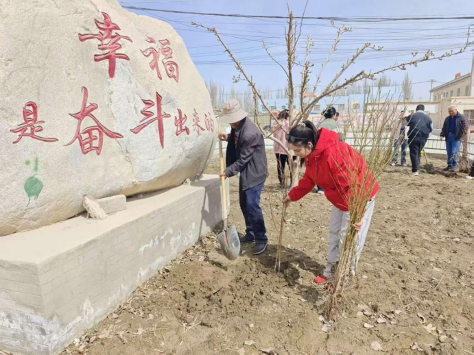 3月31日,若羌县瓦石峡镇新建村组织村“两委”班子成员、党员干部,开展春季果树种植活动,以实际行动为村庄添绿增彩。
