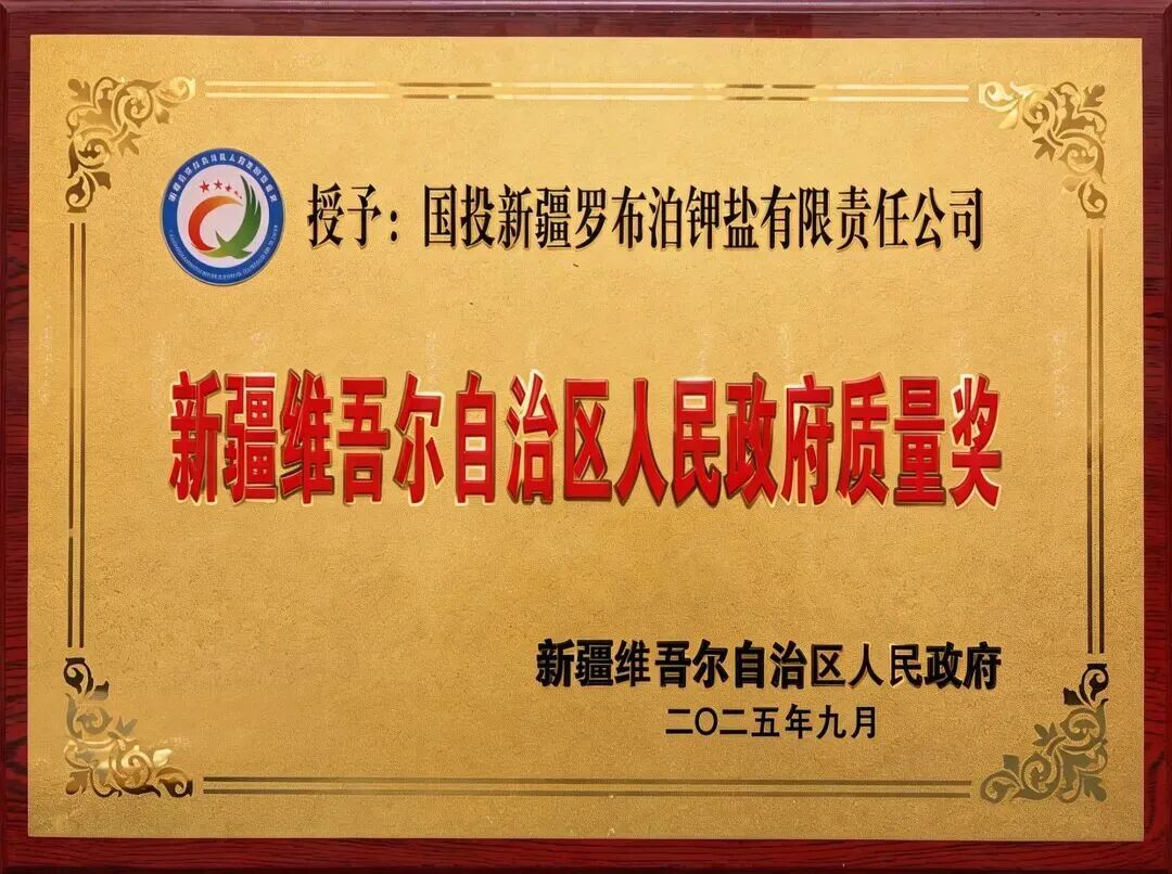 喜获自治区最高质量荣誉,是自治区人民政府对该公司深耕钾肥产业、坚持质量引领的权威认可,也是对其为保障国家粮食安全、端牢“中国饭碗”中所作卓越贡献的褒奖。国投罗钾公司将聚焦服务国家战略,持续坚持高标准,强化科技创新赋能,深入落实质量强企战略,不断推动高质量可持续发展迈上新台阶,为保障国家粮食安全、服务新疆高质量发展作出新的更大贡献。(通讯员 张达)